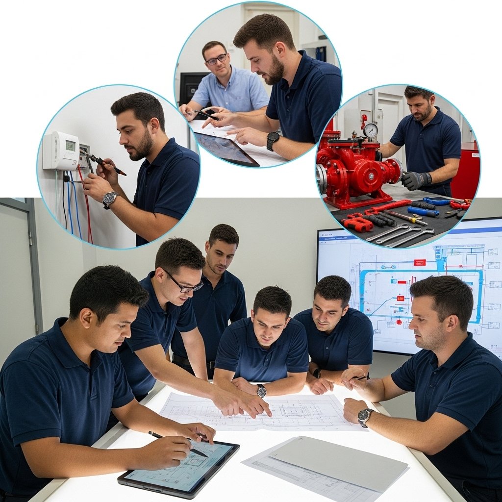 - مضخات الحريق: أنظمة قوية توفر تدفقًا مستمرًا للمياه بضغط مثالي لحماية المنشآت الكبيرة والمجمعات.